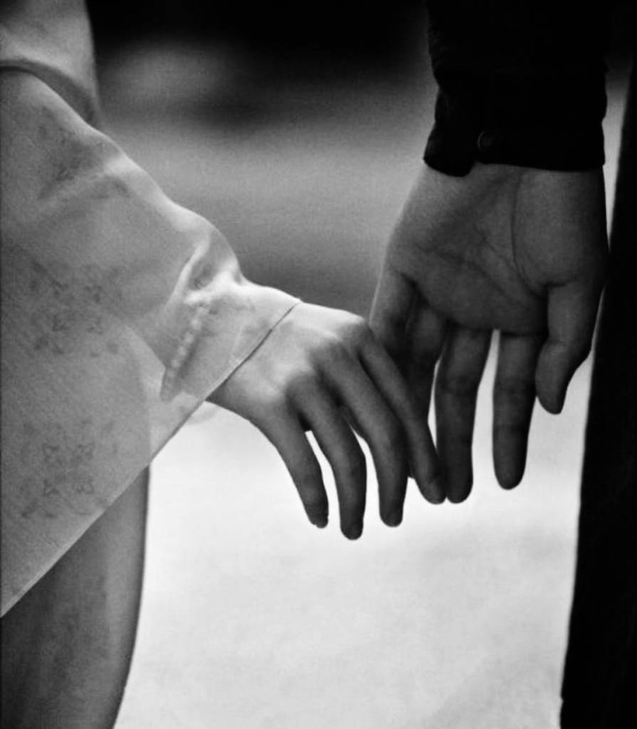 Their arms embraced, and their pinions too;